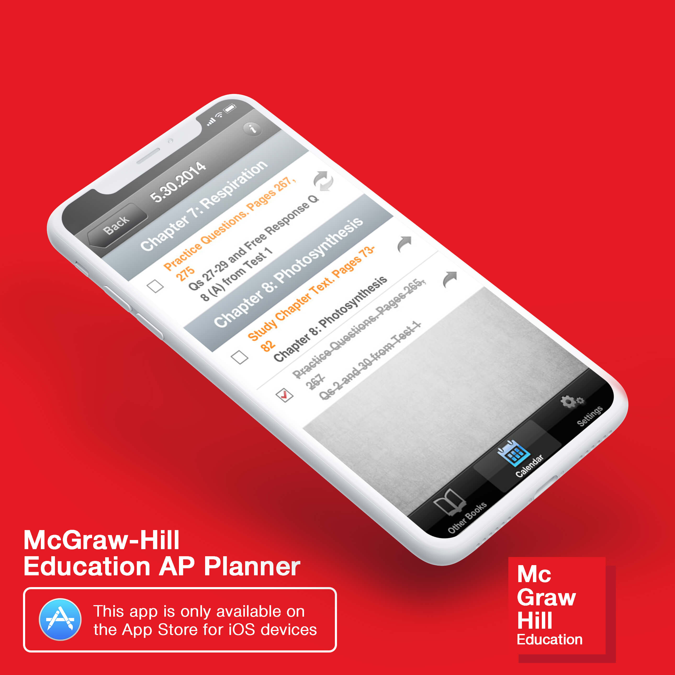 Whether you are short on time and need to focus on practice or feel overwhelmed by the amount of material you need to cover, McGraw-Hill Education AP Planner App is the solution you’re looking for. Studying for a big exam has never been more convenient!